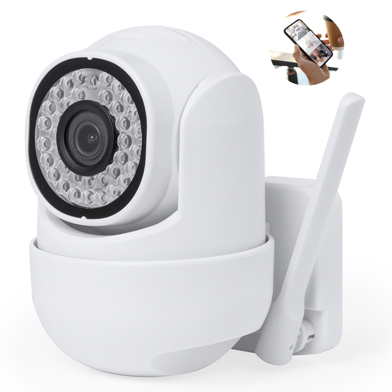 Afstandsbediening en weergave, wifi-verbinding, push-notificatiesysteem, real-time video- en audio-opname, fotocamera, luidspreker, bewegingsdetector met nachtzicht en alarm.