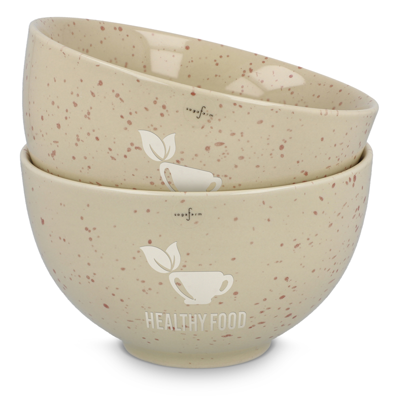 Met natuurlijke beige tinten en een modern spetterpatroon is elke Ditte kom handgemaakt van hoogwaardig steengoed, uniek in kleur en structuur.