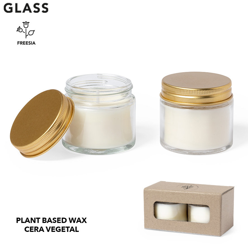 Set geurkaarsen, met plantaardige was en Freesia bloemengeur.