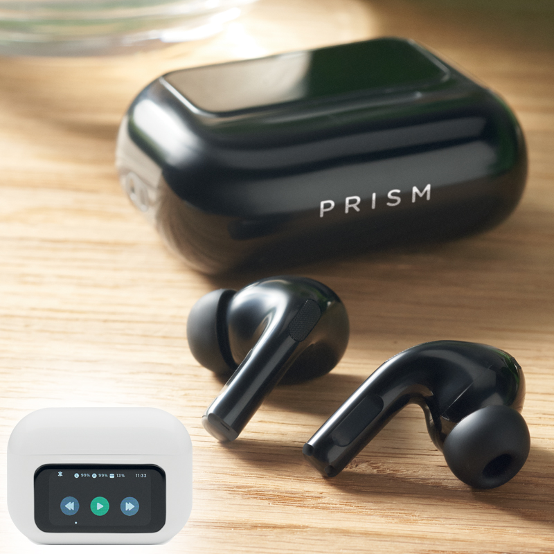 ABS True Wireless Stereo (TWS) 5,0 oordopjes (30 mAh) met ANC/ENC en microfoon, oplaadcase van 230 mAh met touchscreen–display.