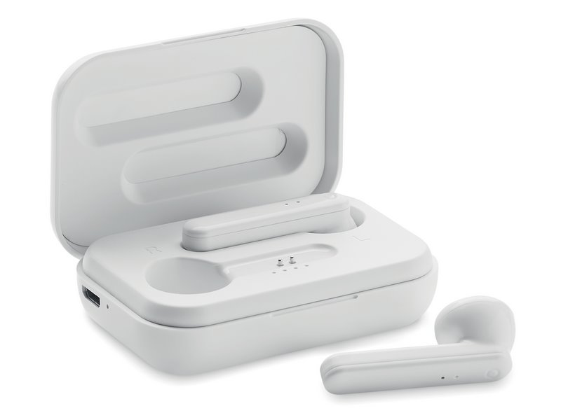 Set van twee 5,0 Bluetooth True Wireless Sound (TWS) oordopjes met 35 mAh oplaadbare batterij en in oplaadcase.