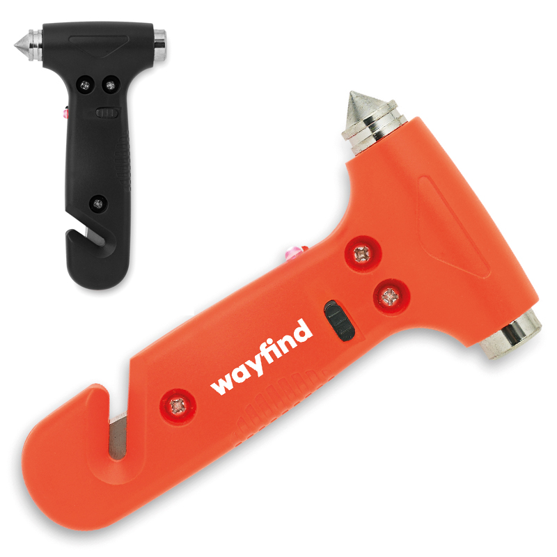 Met mes voor doorsnijden van de gordel, led lampje en hamer voor het intikken van de ruit.