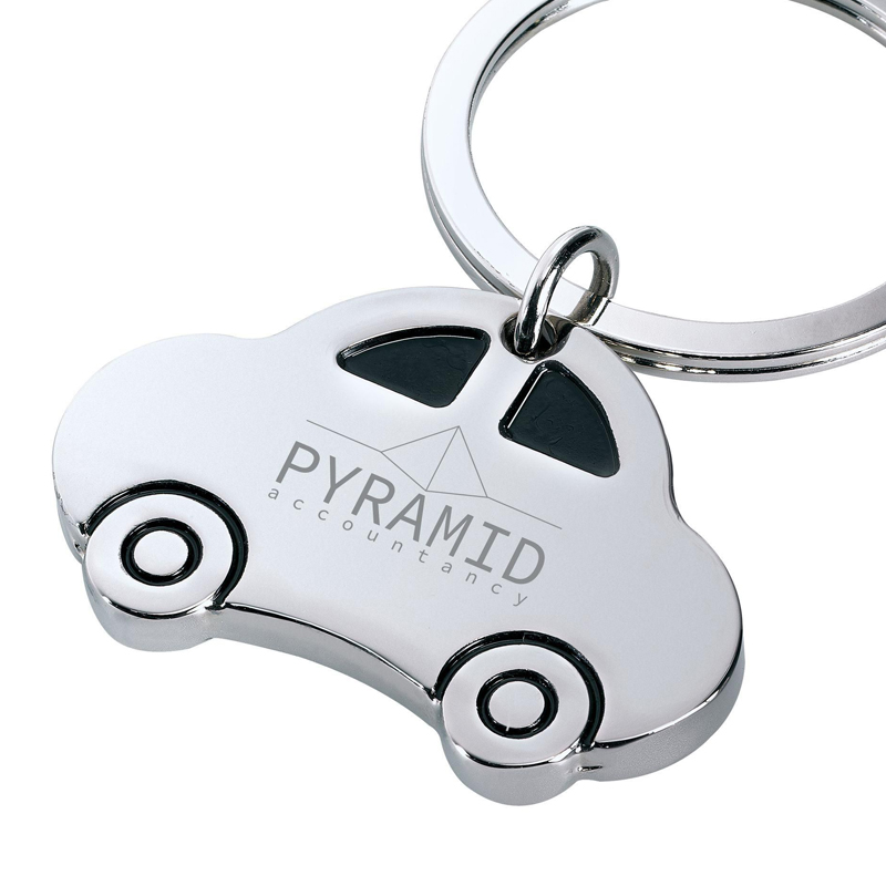 rechthoekige, hoogglans, nikkelen sleutelhanger.
