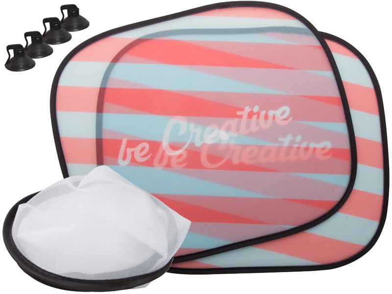 Opvouwbare sublimatie zonneschermen voor de zijramen, twee stuks.