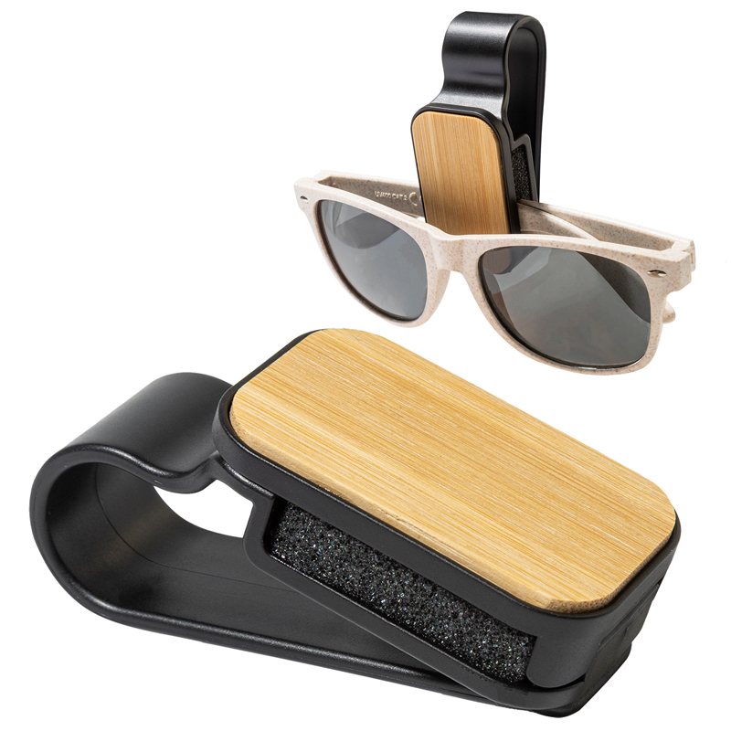 Praktische zonnebril houder clip voor aan de auto zonneklep van gerecycled ABS en bamboe.