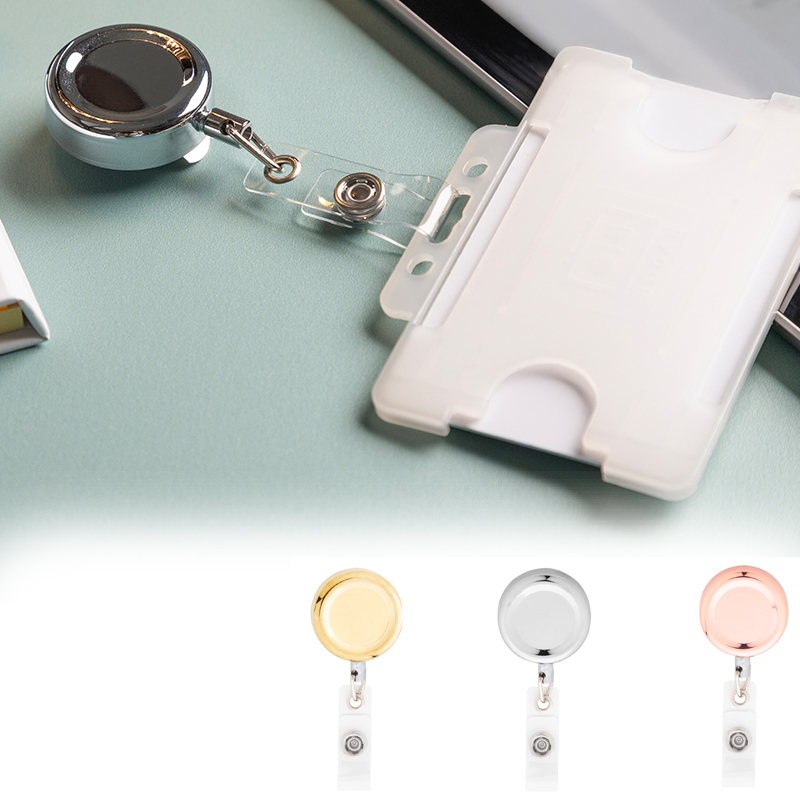 Exclusieve metalen badgehouder met hoogglans metallic afwerking.