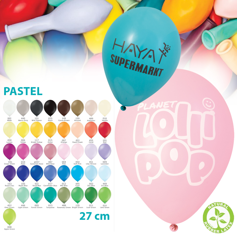 Harogifts geeft u de garantie dat standaard ballon diameter 27 cm pastelkleur custom voldoet aan alle bestaande Europese normen.