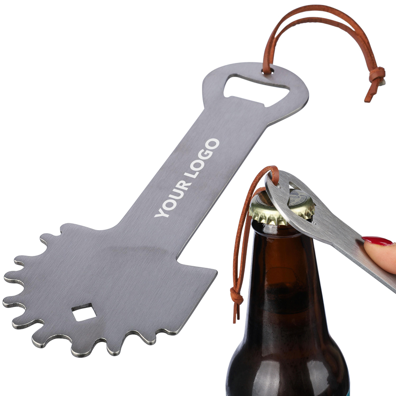 Roestvrijstalen barbecuereiniger met geïntegreerde flesopenerfunctie.