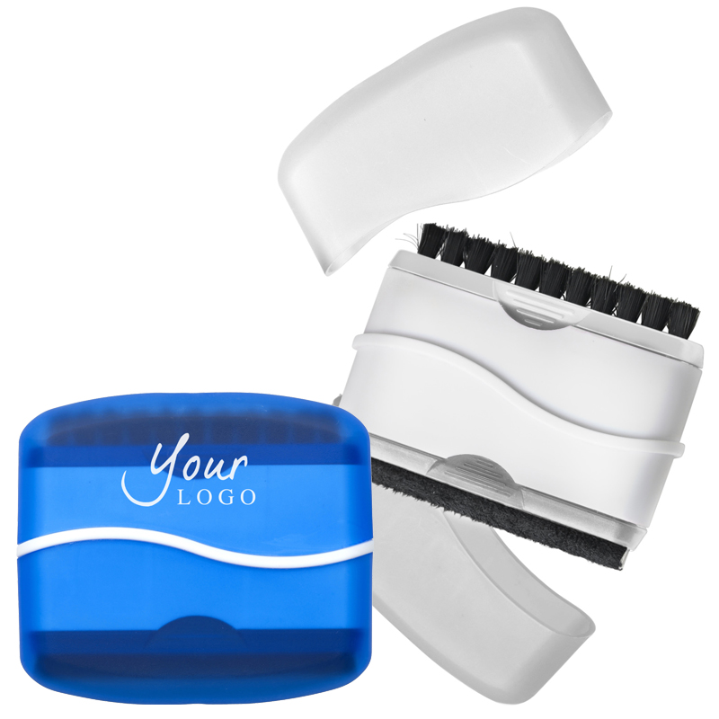Kunststof beeldschermwisser en borstel voor het toetsenbord.
