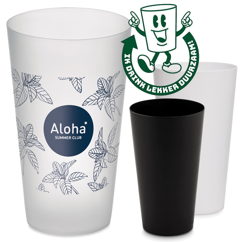 Herbruikbare PP beker met frosted afwerking.