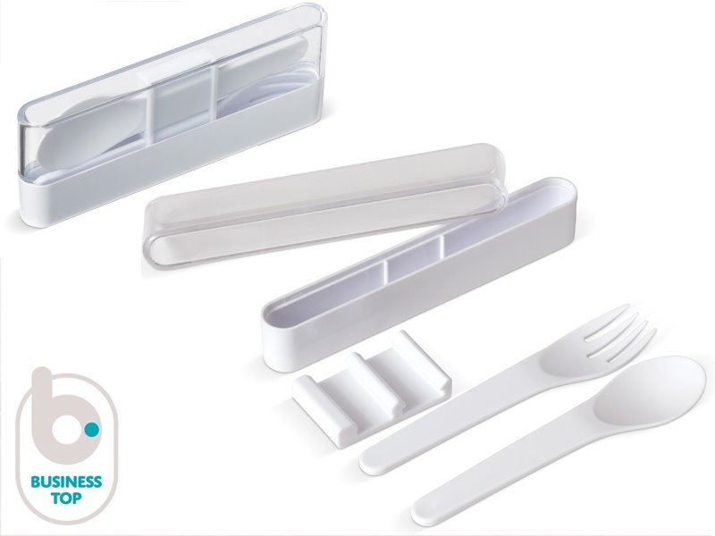 Handige bestekset met vork en lepel voor uw lunch.