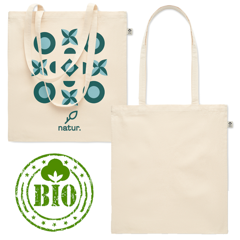 Boodschappentas van biologisch katoen met lange hengsels.