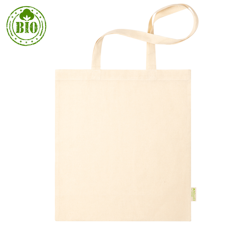 Herbruikbare boodschappentas van biologisch katoen met lange hengsels.