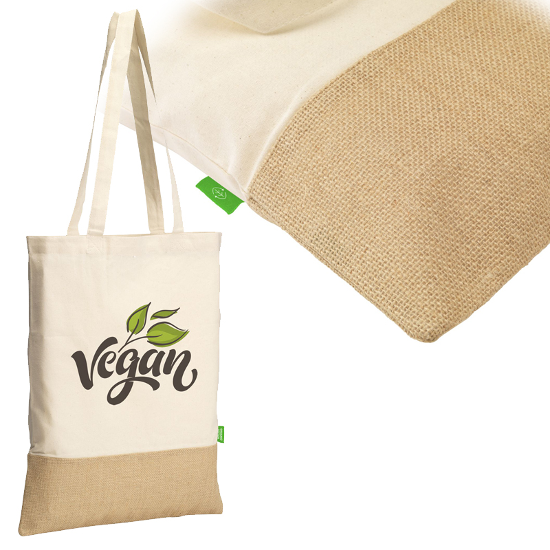 Stevige ECO winkeltas van 100% organisch katoen (160 g/m2) gecombineerd met stevig jute.