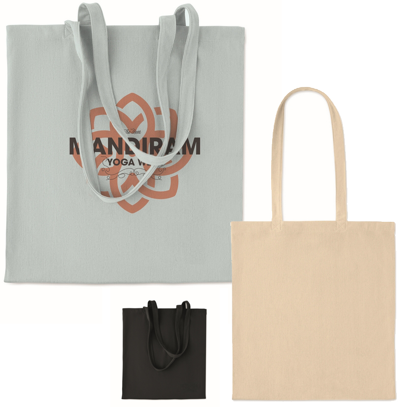Boodschappentas van polyester corduroy met lange hengsels.