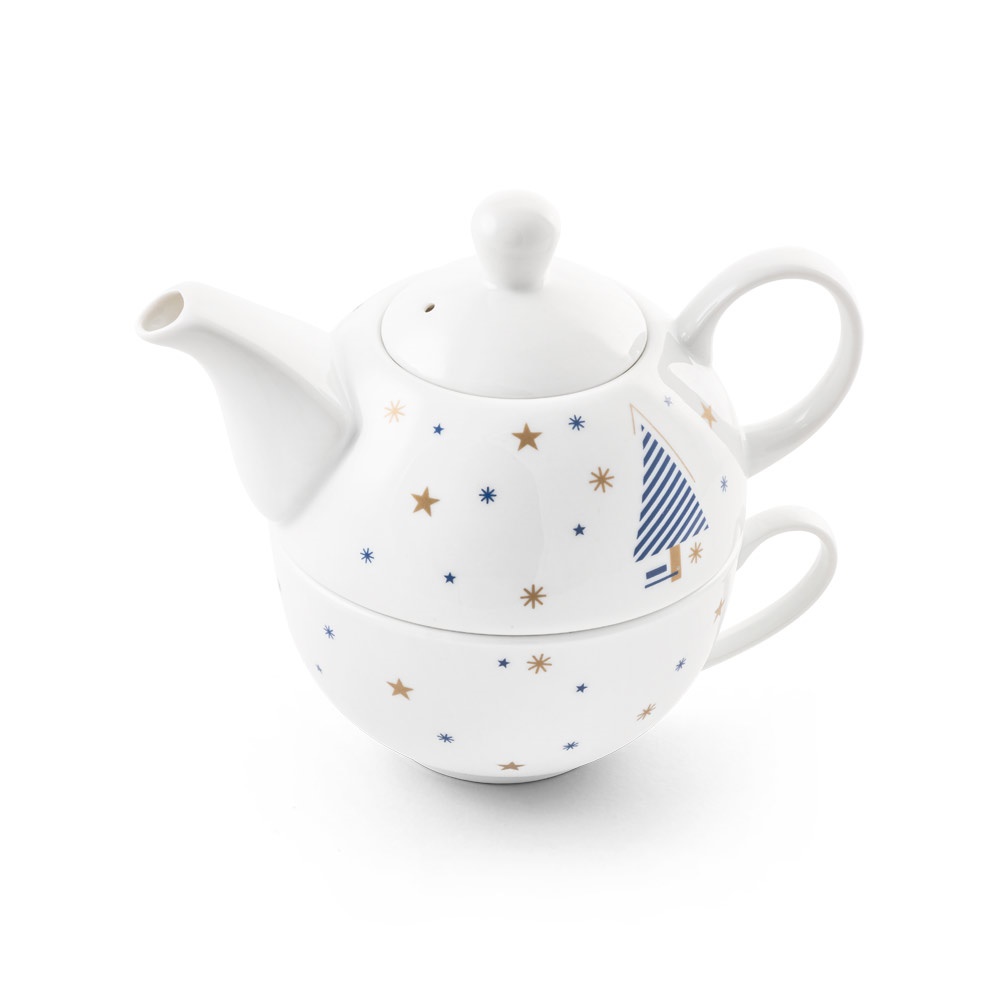 De theepot heeft een inhoud tot 430 ml en de kop tot 220 ml.