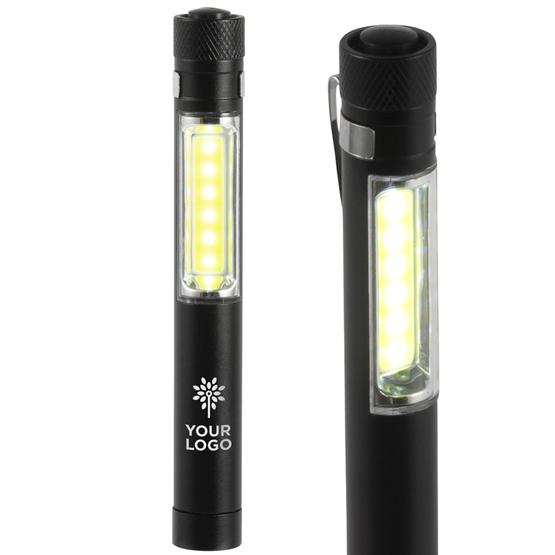 Aluminium COB zaklamp (1W) met magneet aan de onderzijde en een metalen clip.