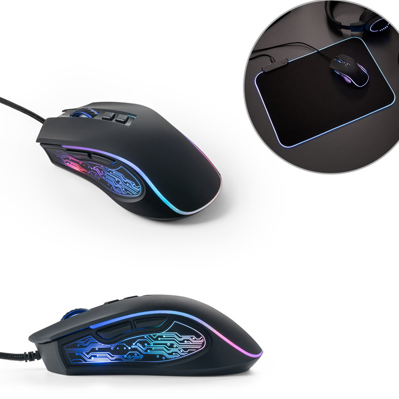 Gamingmuis met ABS en rubberen finish, 7 knoppen en RGB-verlichting met 8 mogelijke modi.