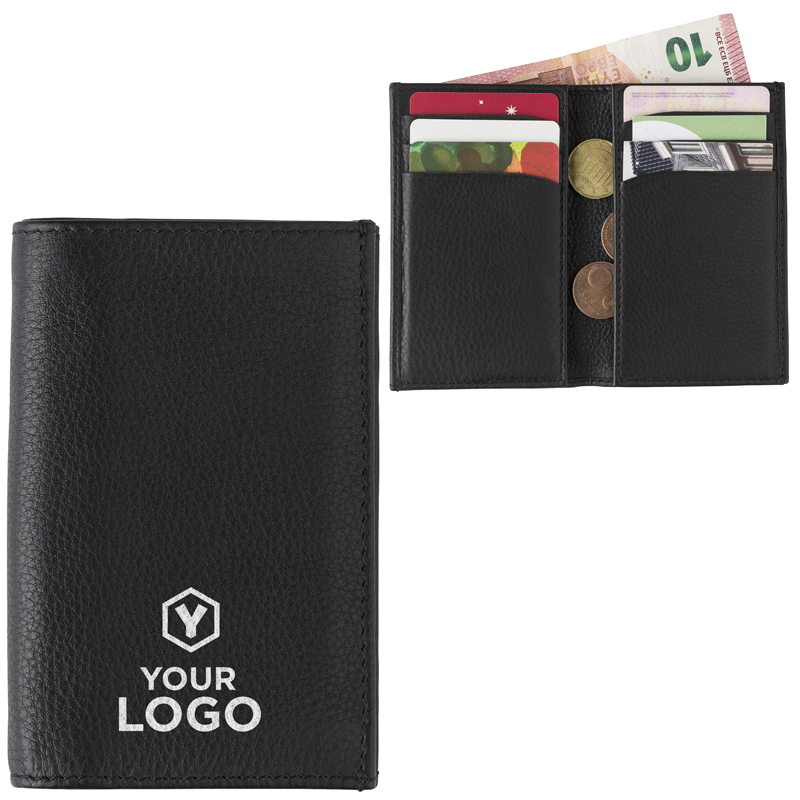 Splitlederen RFID (anti–skimming) creditcardmapje met diverse formaten insteekvakken aan de binnenzijde.