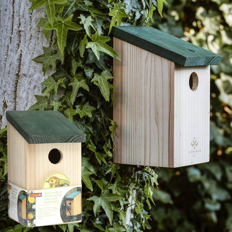 Dit vogelhuisje is geschikt voor kleine vogeltjes rondom het huis, zoals mussen en mezen.