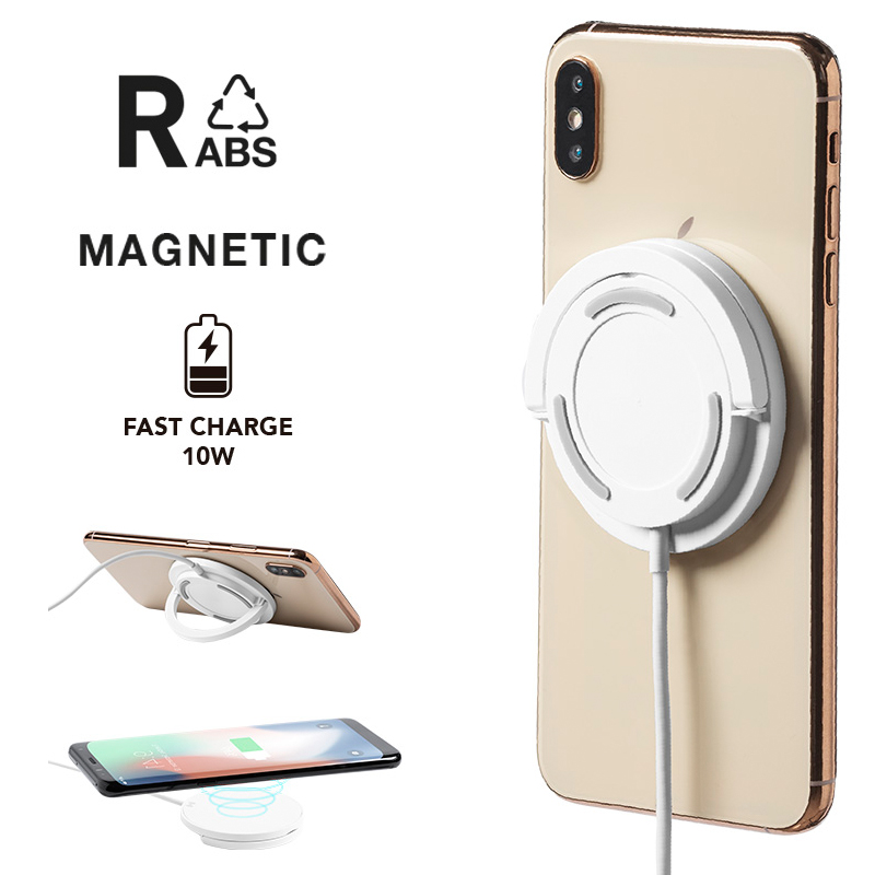 Magnetische draadloze oplader van 10 W met geïntegreerde houder.