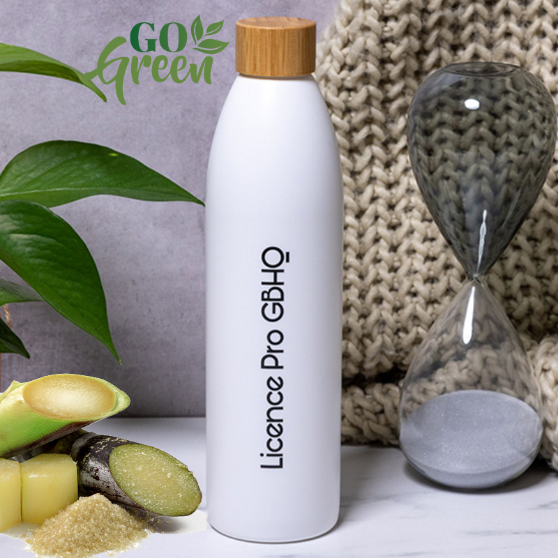 Herbruikbare, slanke waterfles gemaakt van suikerriet afval.