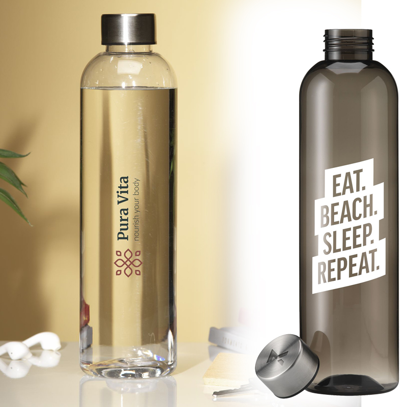 Slanke waterfles van hoogwaardig PCTG SK kunststof.