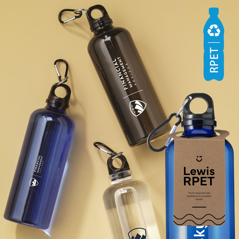 Herbruikbare, gerecyclede waterfles.