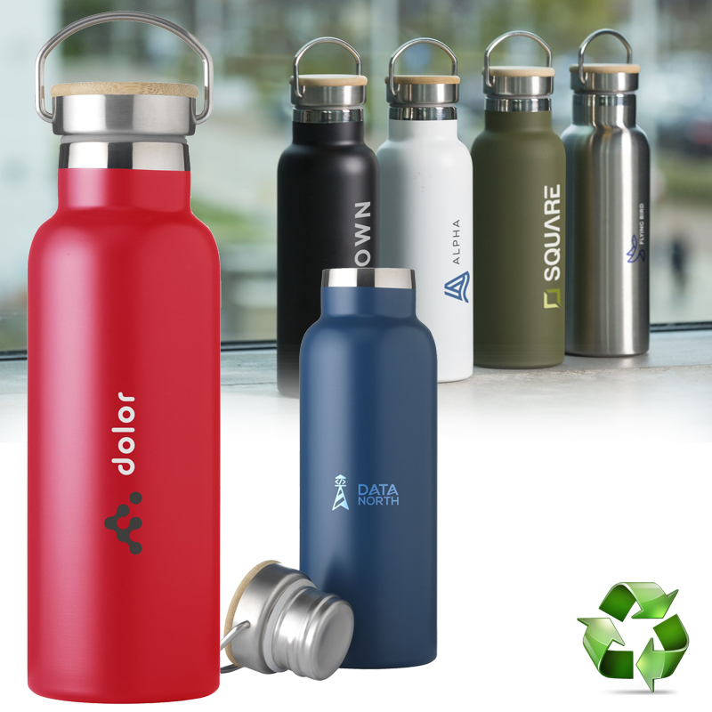 Dubbelwandige, lekvrije waterfles/thermosfles van gerecycled RVS.