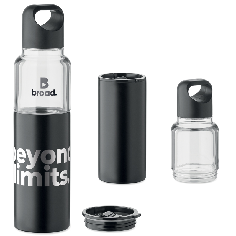 Navulbare 2–in–1 fles van Tritan en dubbelwandig tumblergedeelte van gerecycled roestvrij staal (90% gerecycled, 10% roestvrij staal).