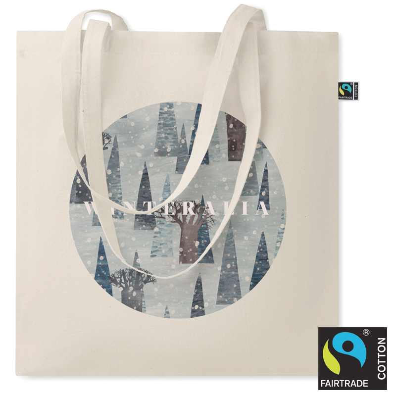 Fairtrade katoenen boodschappentas met lange hengsels.
