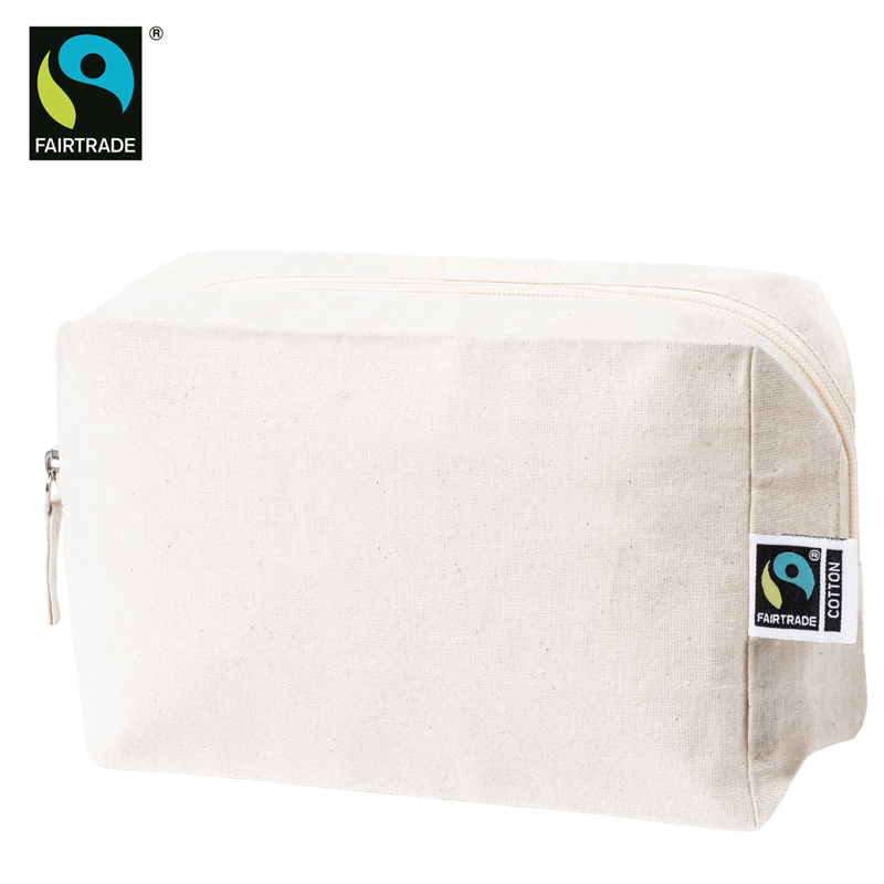 Fairtrade katoenen make-uptas met rits en onderscheidend Fairtrade label.