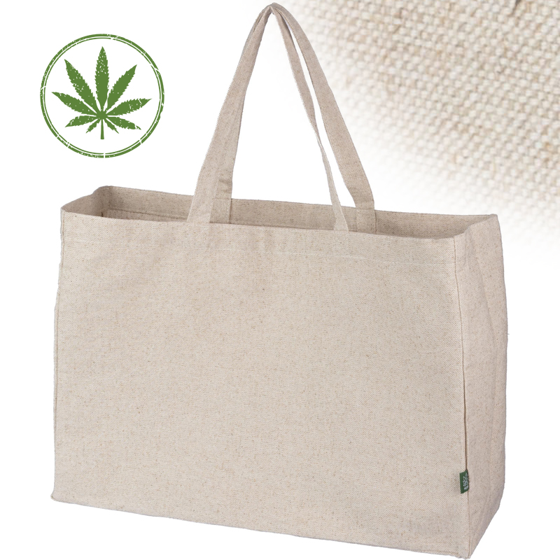Hennep (280 gr/m2) draagtas met korte hengsels, inclusief henneplogo op het label.
