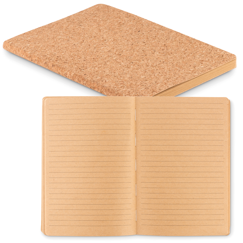 A5 formaat notitieboek met 96 vel gelinieerd papier en omslag van kurk.