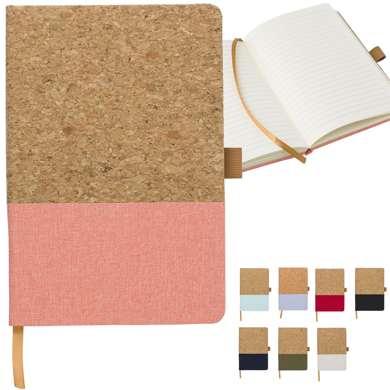 Kurk en katoenen notitieboekje met 80 pagina's (ongeveer A5).
