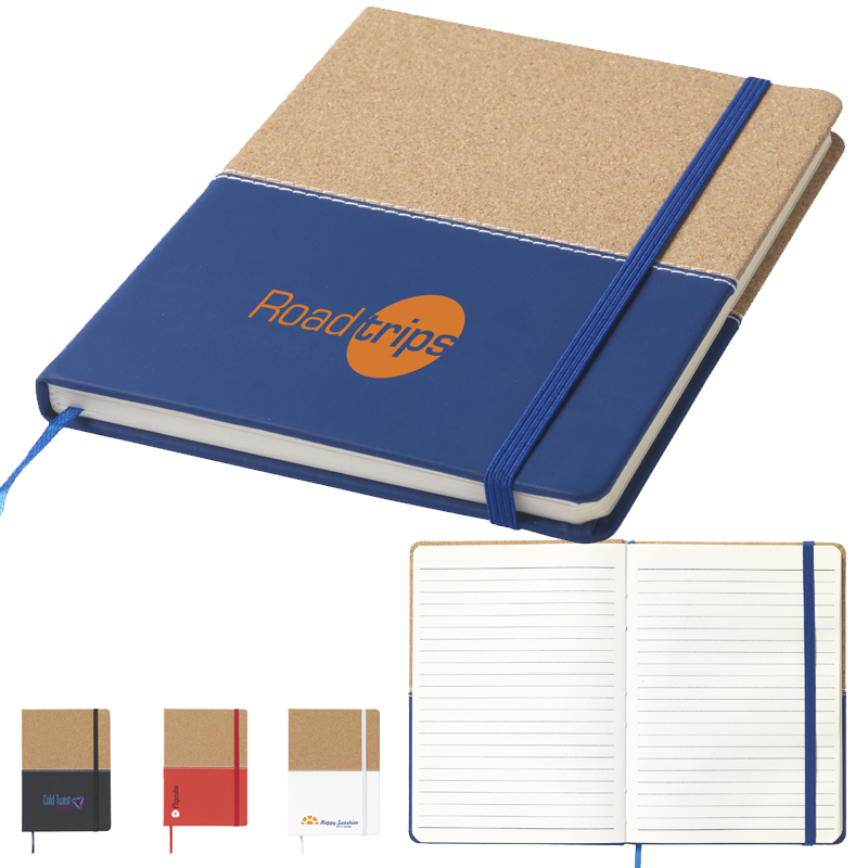 Duo stijl notitieboekje van kurk en imitatieleer in handzame en praktische uitvoering met circa 72 vel crèmekleurig, gelinieerd papier (70 g/m2) en elastische sluiting.
