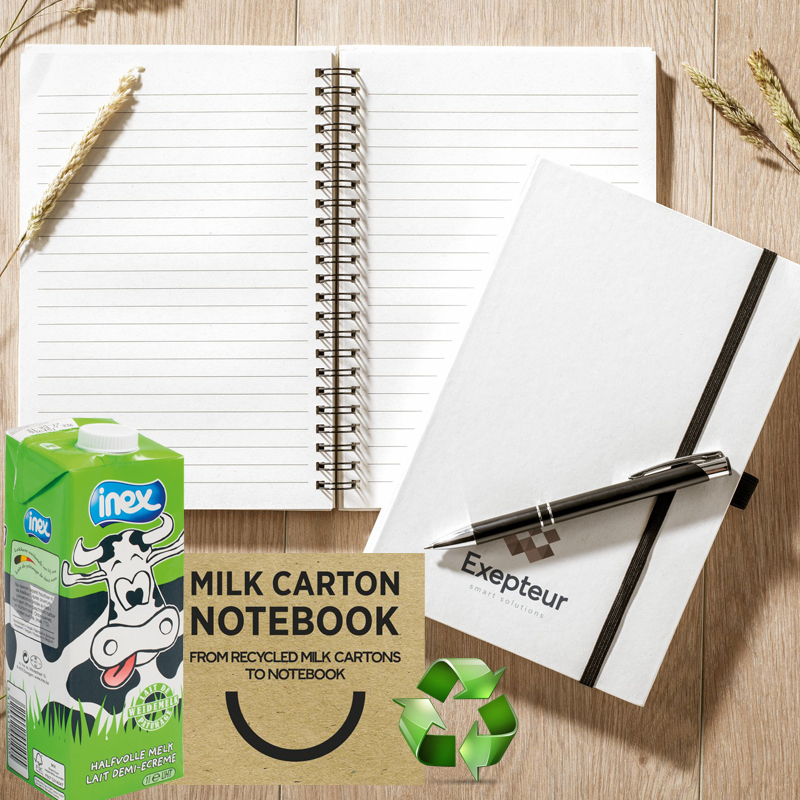 Duurzaam A5-notitieboekje met een cover van gerecyclede melkpakken (tot 70%).