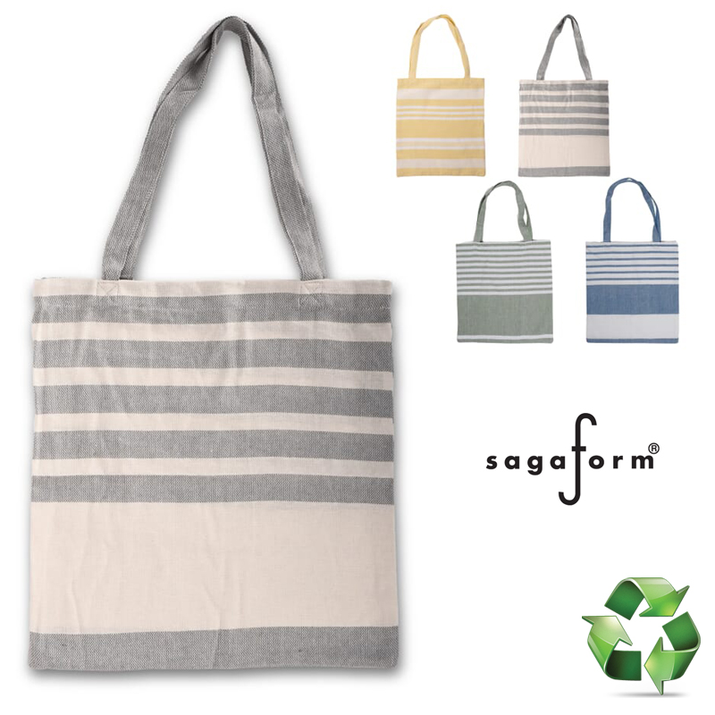 Deze karakteristieke tassen Ella van Sagaform, zijn gemaakt van dun gerecycled katoen (70%) en polyester (30%).