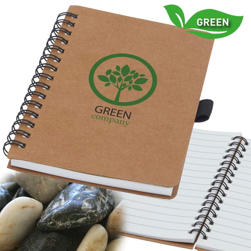 Wire-o-notitieboek in A6-formaat met cover uit gerecycled karton en penlus.