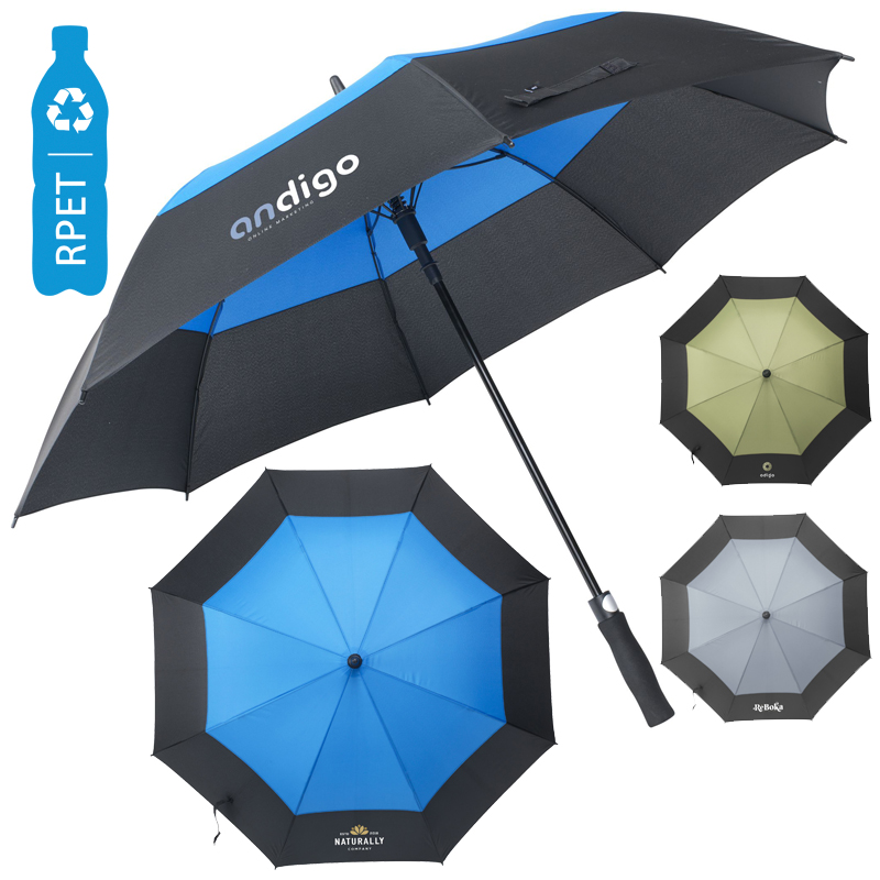 Duurzame paraplu met een bespanning in 2 kleuren, gemaakt van 190T RPET polyester.