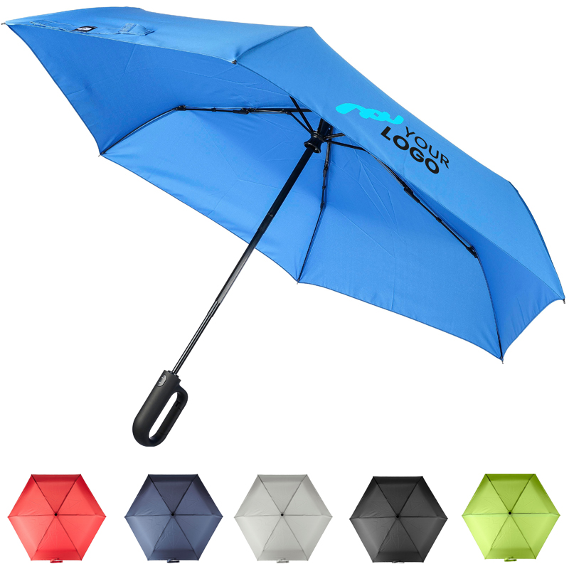 rPET 190T opvouwbare automatische paraplu (27 inch) met zes panelen en een stalen frame.