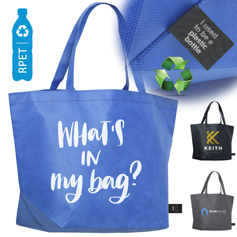 Royale, RPET-non-woven winkel- en strandtas (80 g/m2) met lange hengsels.