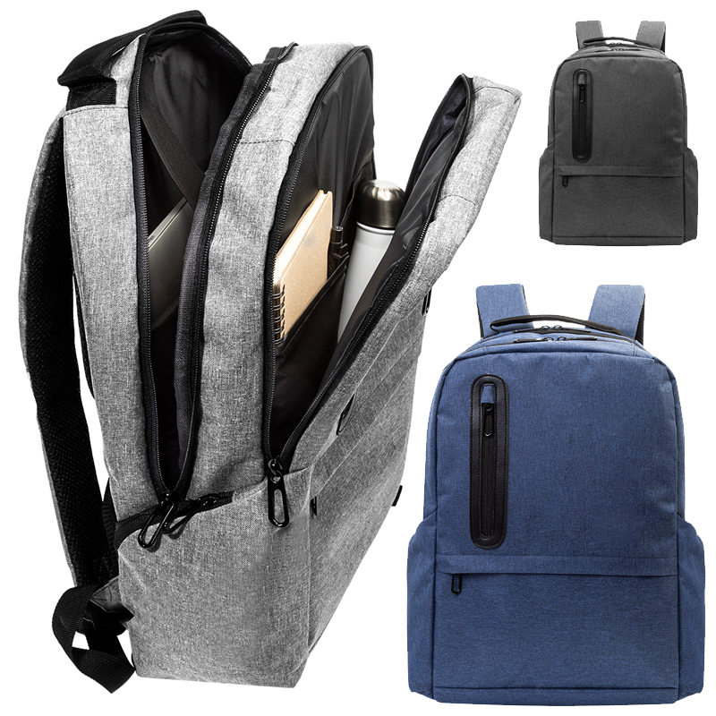 RPET-rugzak met vakken met ritssluiting, 2 voorzakken met ritssluiting, zijzakken met ritssluiting en gewatteerd laptopvak (15 inch).