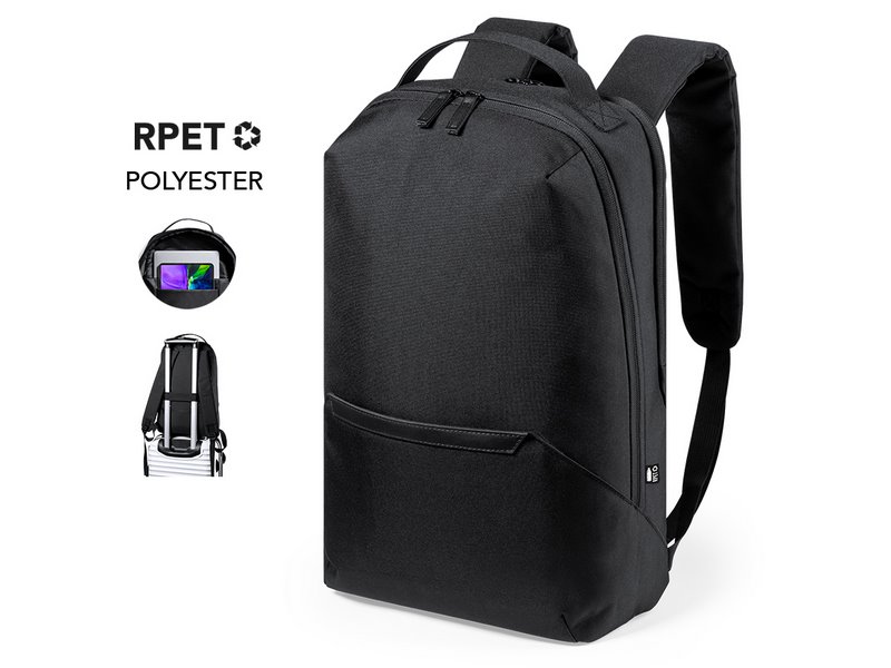 Rugzak van bestendig 600D RPET polyester, gemaakt van gerecycled plastic, dat het hergebruik van plastic afval stimuleert en bijdraagt aan de duurzaamheid van de planeet.