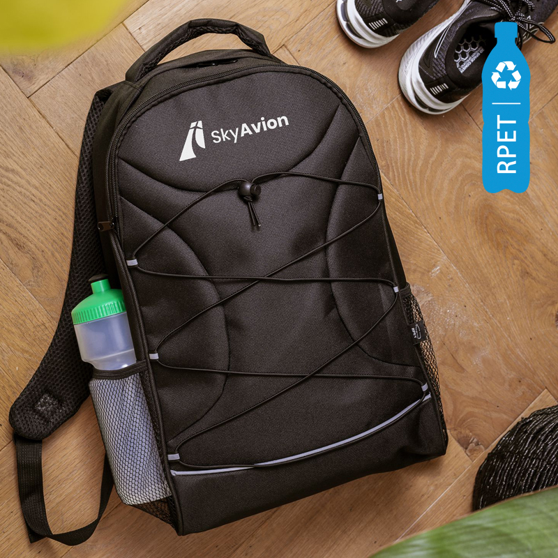 Milieuvriendelijke rugzak van A-klasse 600D RPET met 2 ritsvakken.