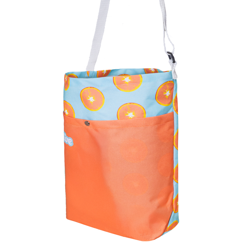 Custom made schoudertas in 600D RPET polyester met verstelbare schouderband en voorvak met knoopsluiting.