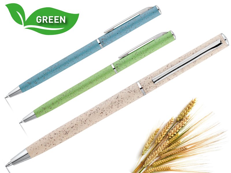 Balpen met clip en zwarte vulling gemaakt van tarwestro vezel en ABS kunststof.