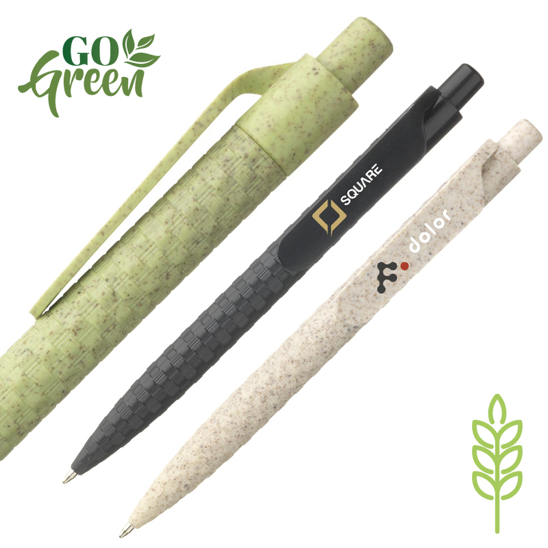 Eco-vriendelijke, blauwschrijvende balpen gemaakt van 60% tarwestro en 40% ABS.
