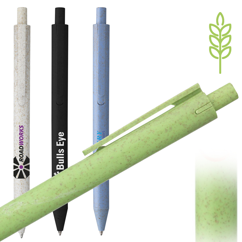 Eco-vriendelijke, blauwschrijvende balpen gemaakt van 50% PP en 50% tarwestro.