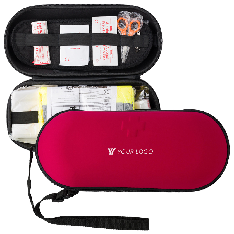 40–Delige EHBO en noodgevallenset voor in de auto, verpakt in EVA etui met korte draagband.